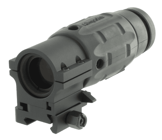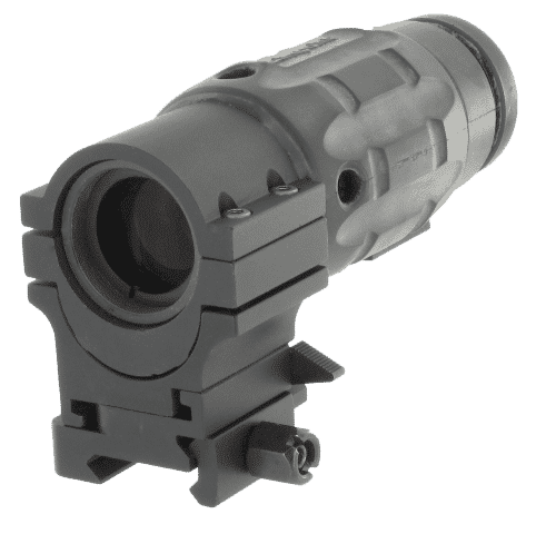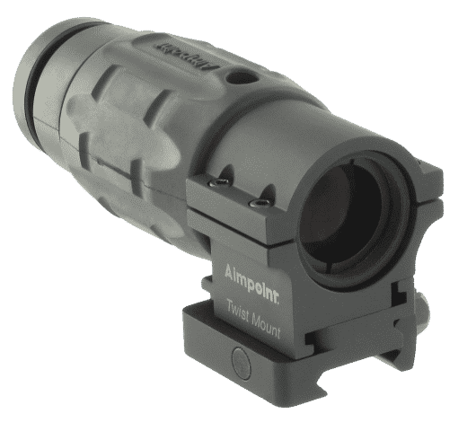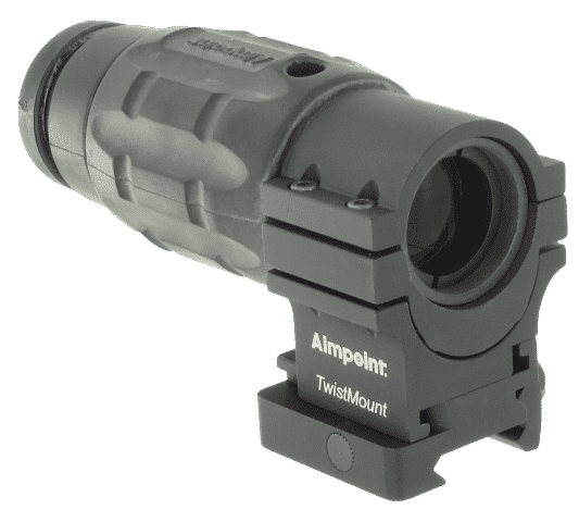 The Aimpoint® 3XMag magnifying module is a high quality optic that can be used with any Aimpoint sight for extended range target identification and engagement. This high quality accessory gives the shooter the best of both worlds: rapid CQB aiming with an Aimpoint sight, and long range target acquisition in combination with the magnifier. The Aimpoint TwistMount allows this transition to occur effortlessly and in just a matter of seconds.