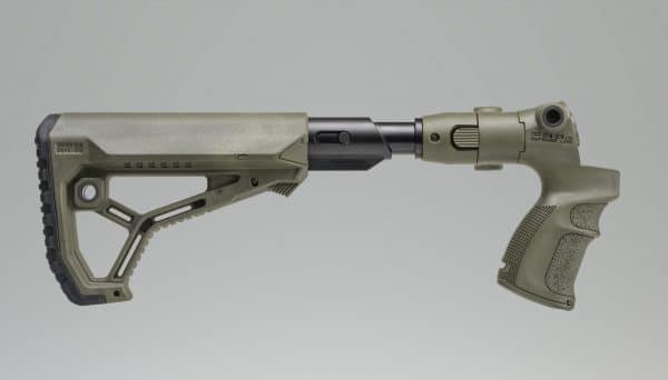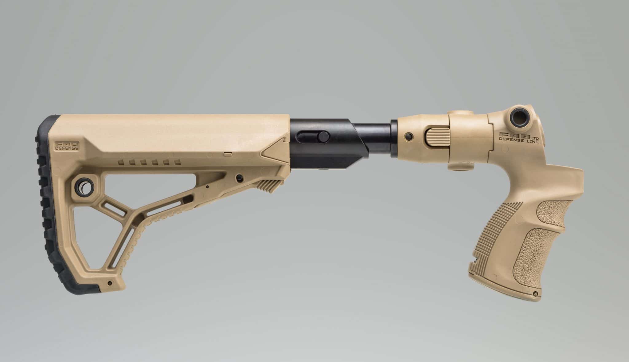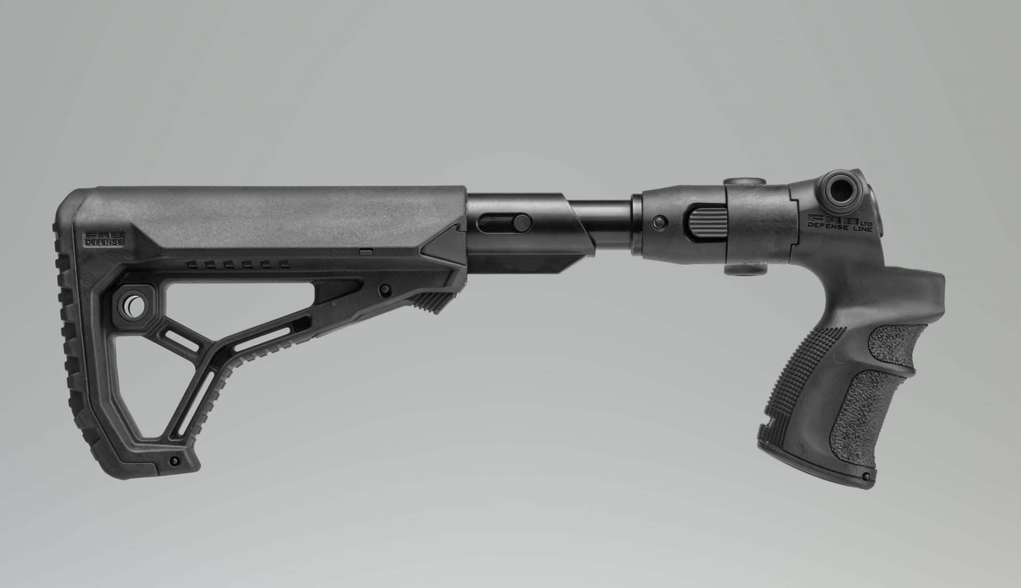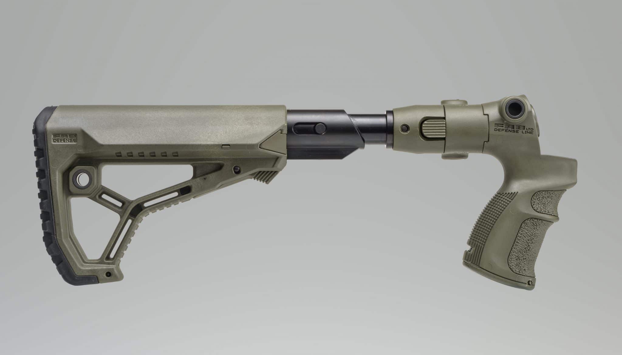 FAB Defense Mossberg 500 Buttstock has M4 style and is Folding and Collapsible that improves overall weapon versatility,reduces kick, while enhancing your Mossberg's accuracy and tactical features.