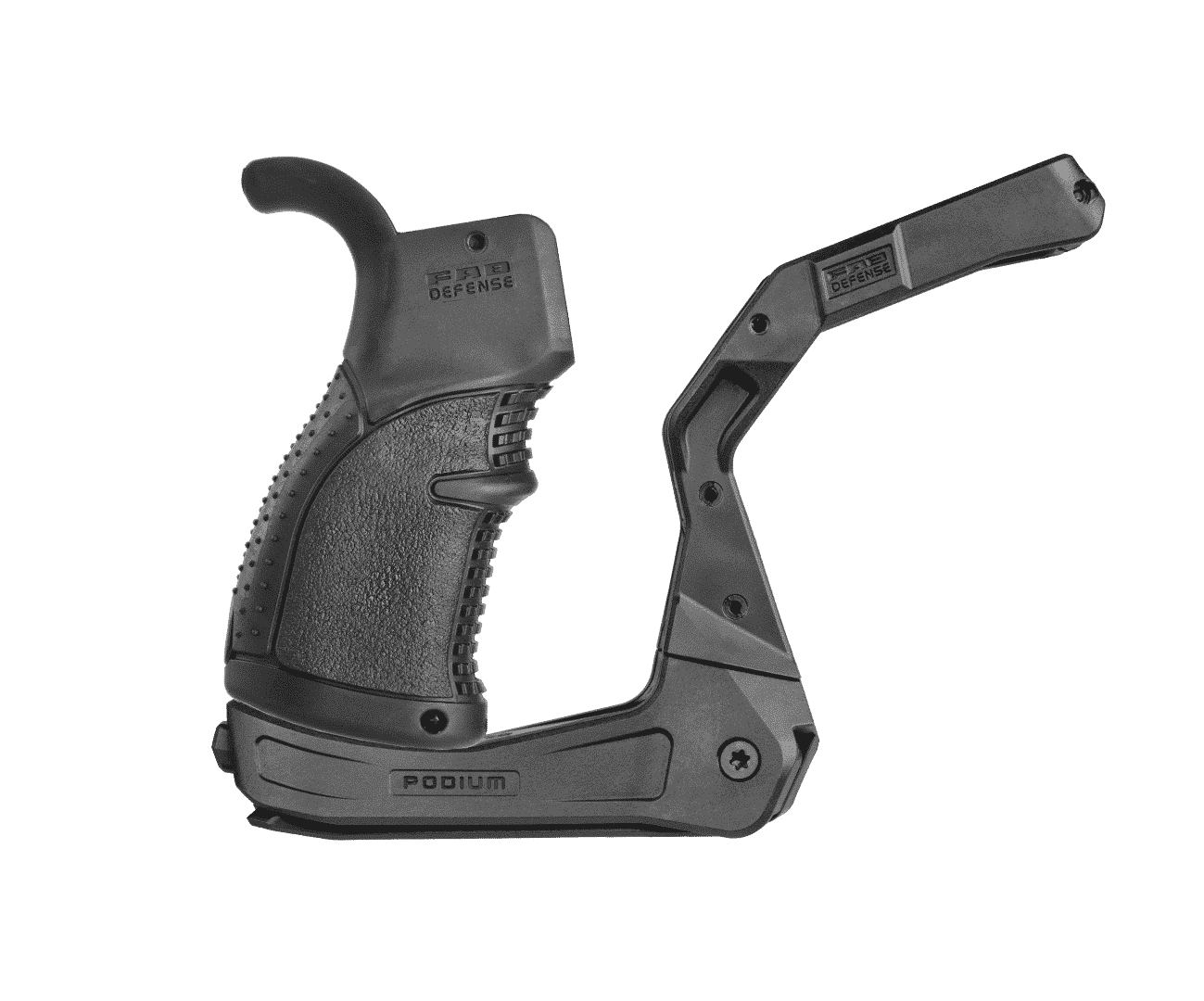 The Podium implements a bi-pod support for the AR-15 platform in a new and innovative way.