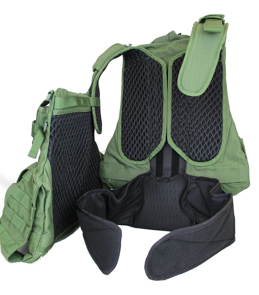Our inner weight distributing waist belt for body armor vests. An elastic detachable waist belt made of foam and mesh for air circulation. The main purpose of the belt is to transfer the weight of the vest from the wearer's shoulders to his hipbone and to allow better tting and higher comfort to the user. The waist belt is elastic & cushioned providing good support to the lower back of the wearer in a way that will not aect the air circulation. The waist belt is quickly and easily adjustable giving the user an ability to make a perfect fit to height within 20 seconds. The waist belt was designed in a way which prevents any interference with other backpack waist-belts and other equipment used by the wearer.