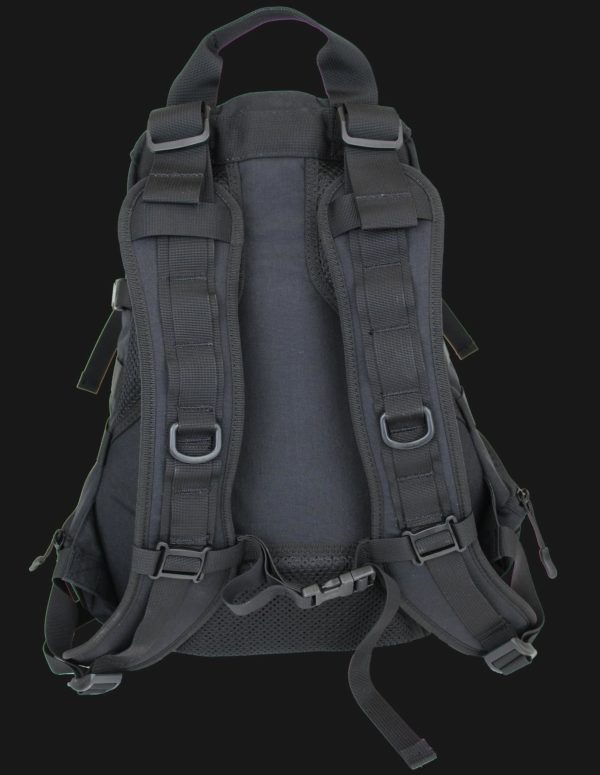 Our newly designed assault pack is slim yet roomy with a main top zippered opening compartment of 15 liters. A secondary compartment also with a top opening zipper offers additional 5 liters of storage. In addition, there are one front pocket and two side pockets for small items. The side pockets are easily accessible also when the bag is on the back. An inner pocket within the main compartment can be used for either a laptop up to 13” or a hydration bag with 2 top openings for the water tube. Outer MOLLE webbings provide the option of attaching compatible pouches. The padded shoulder straps are detachable and allow use of the bag with two straight straps or any one diagonal strap according to the comfort of the user. The back of the bag is cushioned for better comfort.