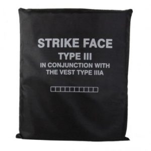 Strong, Multi-hit plate. Supplies level III (3) protection in conjunction with level III-A bulletproof vest.