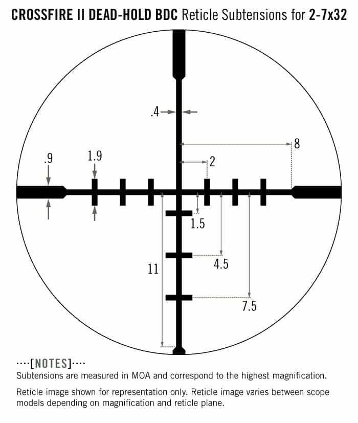 Customized hashmark design helps eliminate guesswork on holdover and windage corrections. Good for hunting/shooting at varying ranges where estimating holdover is a concern.