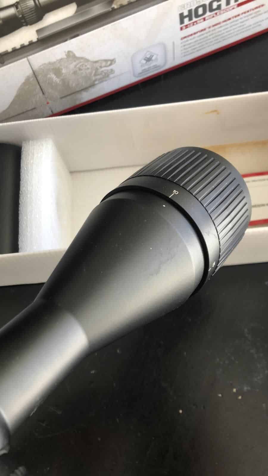 | Adjustable Objective | Adjustment for riflescope's objective lens provides image focus and parallax removal. |