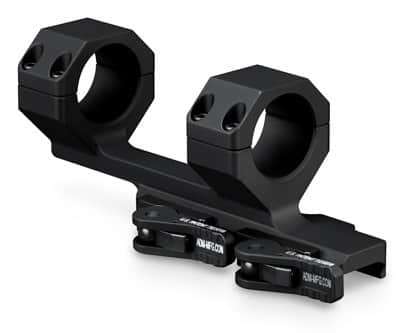 This quick-release cantilever mount is designed for mounting telescopic sights with 30mm tubes onto a flattop style AR-15 rifle. The offset of this cantilever mount positions the scope in a forward location, providing correct eye relief and head placement when used on an AR-15.