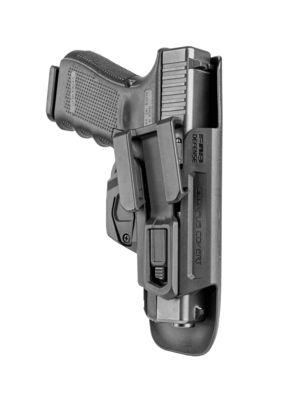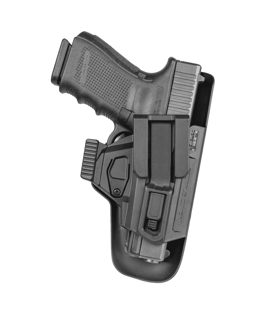 The holster utilizes an adjustable passive retention device that allows the end-user to set the passive tension. Some like a tight fit, others prefer just enough to keep the gun situated. Adjustable tension can be necessary depending on the type of belt or pants you wear and the tension they may or may not provide. Adjusting as necessary allows users to remain dressed appropriately and to carry their guns safely.