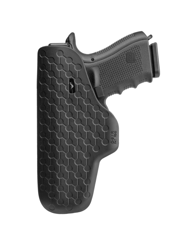 The backing is also rounded for increased comfort and textured to prevent the FAB Defense holster from sliding in any direction. The backing also features a combat cut that allows for a full grip of the gun for a rapid and safe draw and quick and stable weapon presentation.