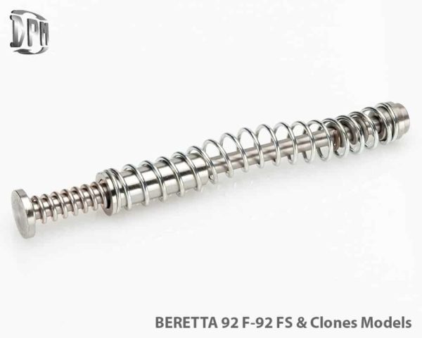 This system works due to the multi spring intricate rod (three springs) and controls the functionality of the pistol. The third spring which is contained within the rod controls the movement of the slide so it never rams on the frame.