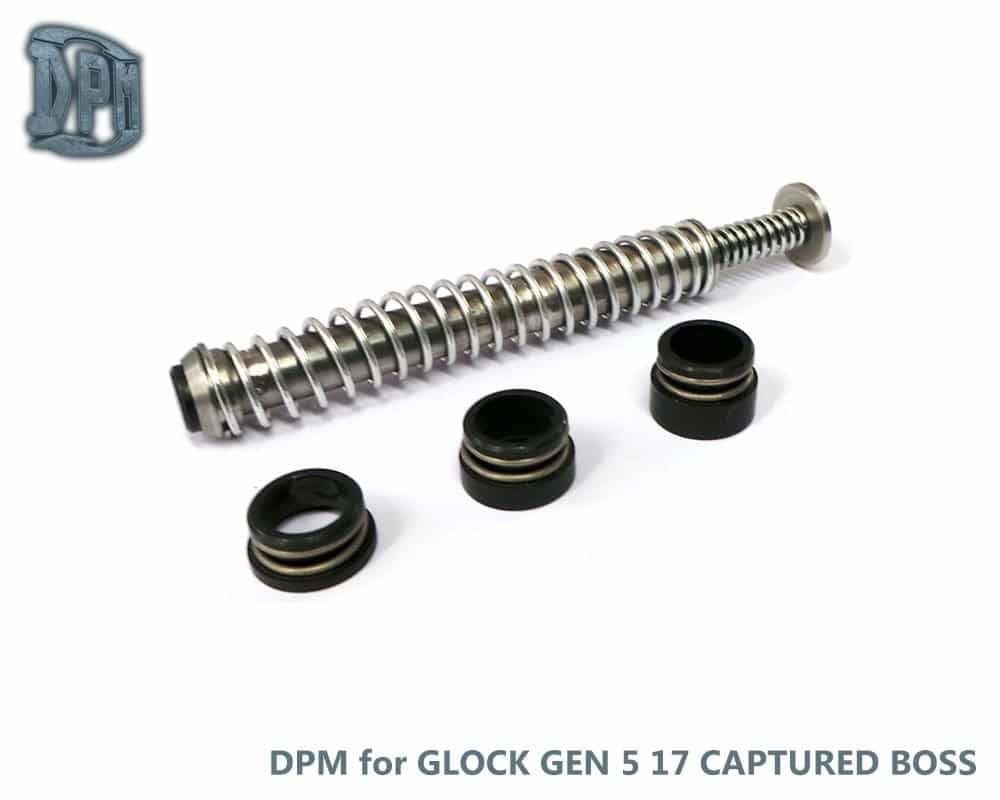 The third spring which is contained within the recoil rod controls the movement of the slide so it never rams on the frame. This system includes three different in length Washers / Spacers.