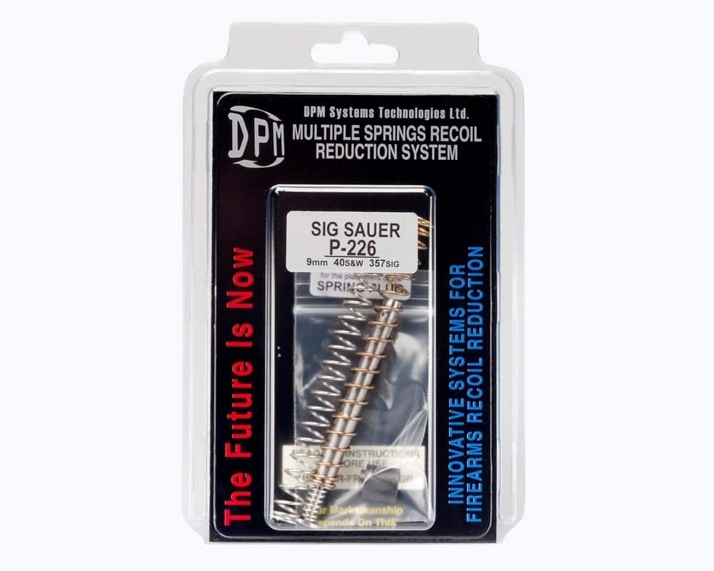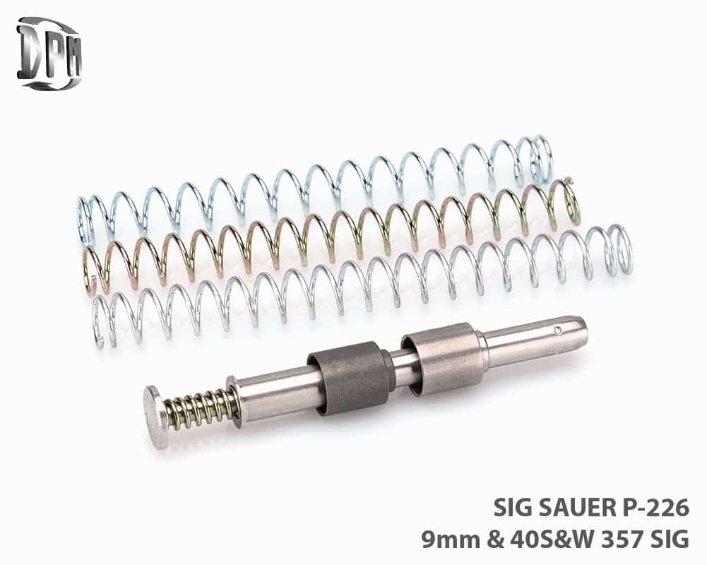 This system works due to the multi spring intricate rod (three springs) and controls the functionality of the pistol. The third spring which is contained within the rod controls the movement of the slide so it never rams on the frame. The system includes two different spring plugs and three different external springs. The Dark Grey spring plug is offering a heavier buffer effect and the silver spring plug offers a lighter buffer effect (slide full open position).