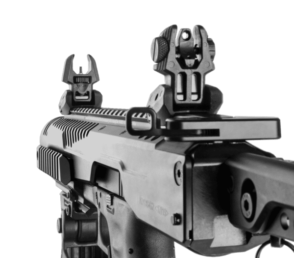 The dual aperture FBS Front + RBS rear sight is windage adjustable and can be mounted on all 1913 Picatinny rails, but is specially made for the M4 / AR-15 / M-16 platform and the K.P.O.S.