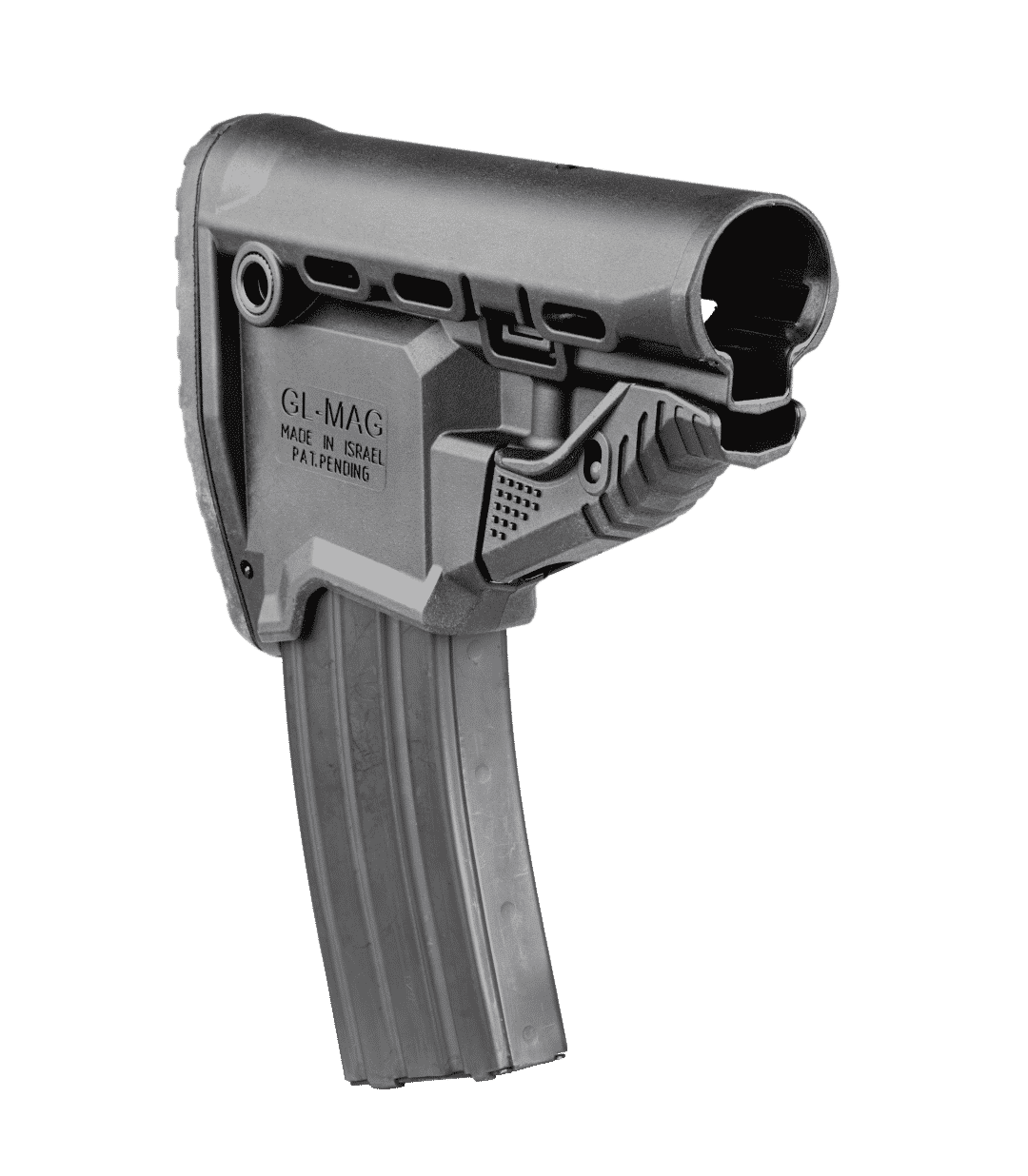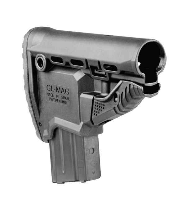 GL-MAG– M4 ‘Survival’ Buttstock w/ ‘Built –in’ Mag Carrier Whether it’s your accuracy or numerous target engagements you can depend on your last ten chances with FAB’S Survival Buttstock w/Built-in 10 round Mag Carrier. The GL-MAG incorporates an inconspicuous/sleek M4 Magazine Carrier.