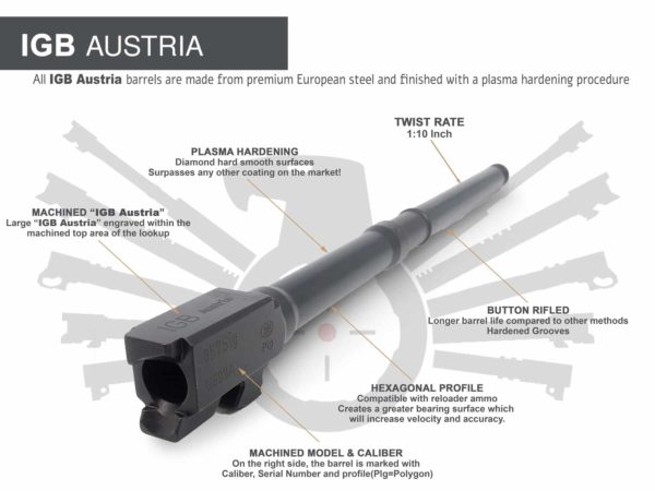 • Quality: IGB Austria barrels are machined on specially designed machines optimized for pistol barrel production to ensure the best quality.