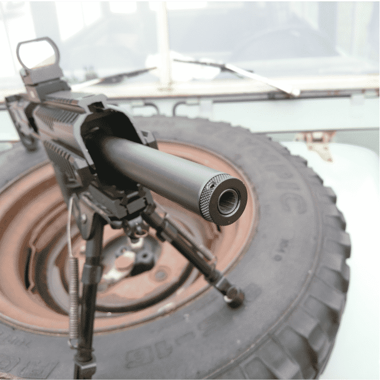 The optical impression is similar to a sound suppression device. The IGB shroud, due to its open construction, does not suppress the sound, nor can it be altered to do so. The IGB shroud protects the barrel or the shooters hand against burns.