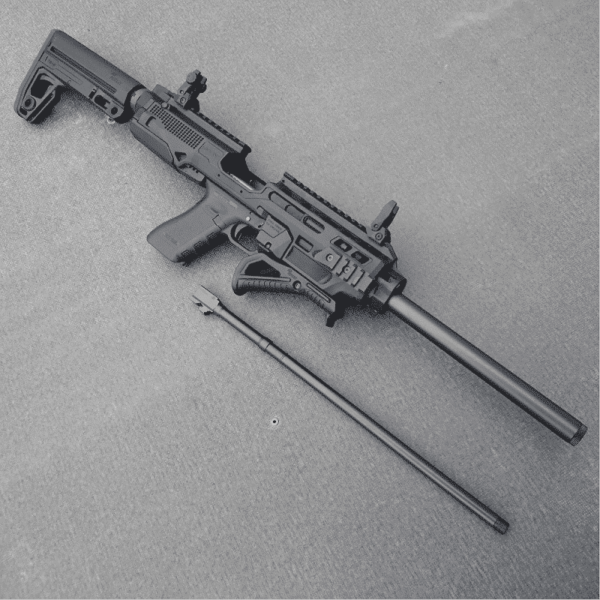 -----Abb. Glock 17 with 16" IGB barrel and shroud attached to the barrel.