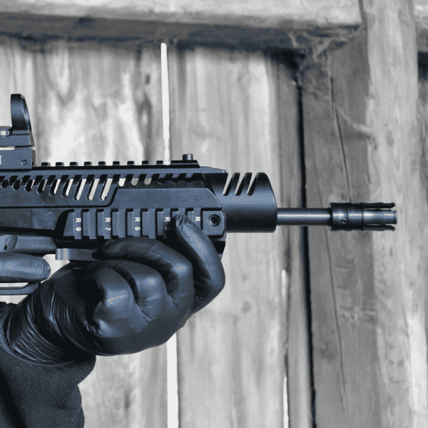 The IMPULSE SYSTEM uses powder gases, collected via ports in the barrel and transfers this energy via a hollow chamber (gas collector or impulse chamber) and a sliding element (impulse transfer ring) to the slide. This impulse equalizes the mass irregularities and allows reliable function even with heavier or longer barrels.