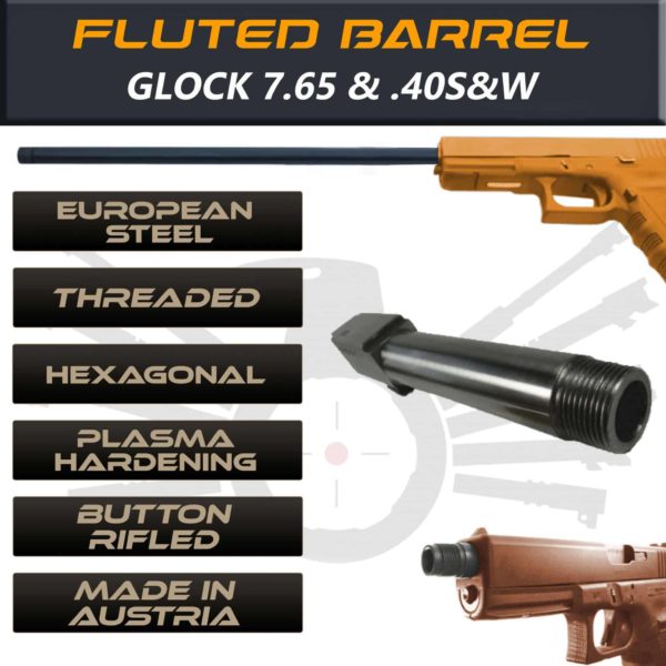Glock Gen 5 Threaded & Fluted Barrel Standard Length Made By IGB Austria - Match Grade Hexagonal Profile for 7.65 & .40S&W