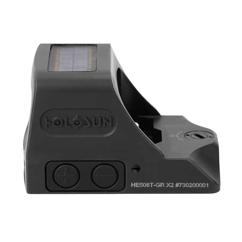 The HE508T-GR is an open reflex optical sight designed for pistol applications. Features include a Titanium housing, Holosun?s Super LED with up to 50k hours battery life, Multi-Reticle System, Solar Failsafe, and Shake Awake