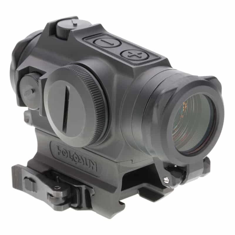 The HE515GT-GR is a 20mm micro optical sight designed for rifle and carbine applications. Features include a Titanium Housing, Shake Awake, 12 brightness settings, Holosun?s Green Super LED with up to 50k hour battery life, Multi-Reticle System, QD mount, Kill flash, and Clear Lens Caps