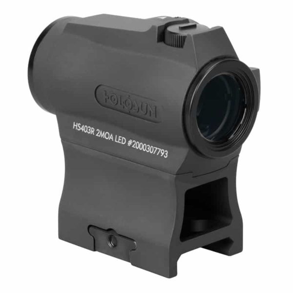 The HS403R is a 20mm micro optical sight designed for rifle and carbine applications. Features include our new Rotary Switch, 12 brightness settings, Holosun?s Super LED with up to 50k hours battery life, and a 2 MOA Dot.