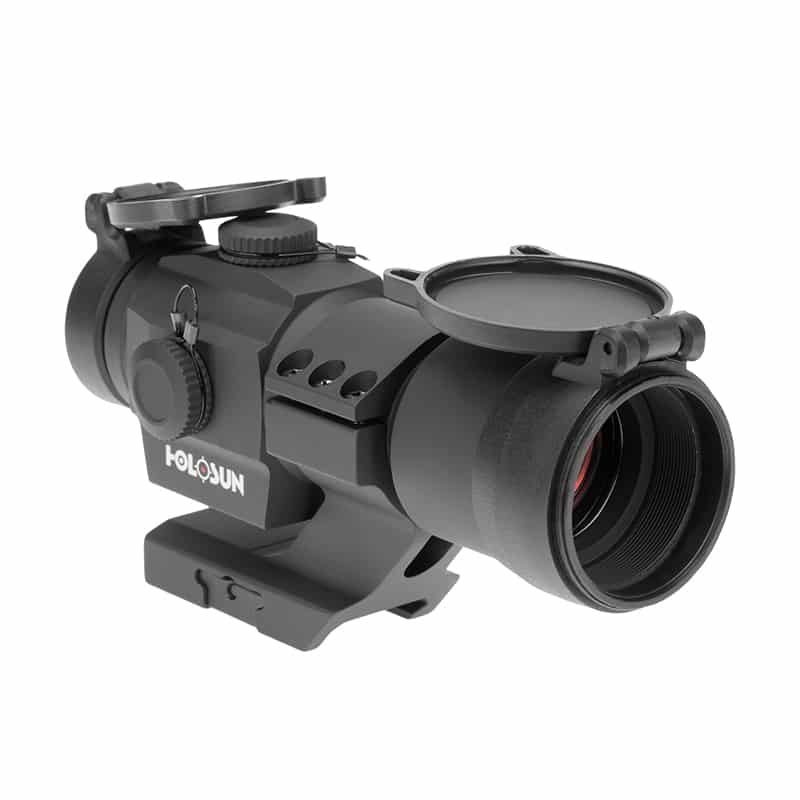 The HS506 is a 30mm optical sight designed for rifle and carbine applications. Features include Shake Awake, 12 brightness settings, Holosun?s Super LED with up to 50k hour battery life, Multi-Reticle System, Cantilever Mount, and Flip-up Lens Caps.