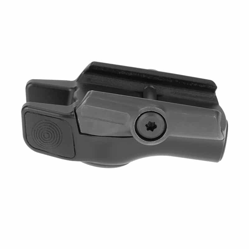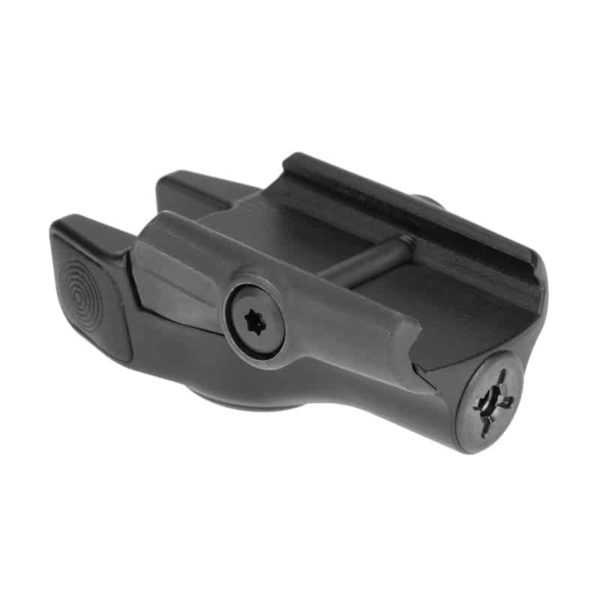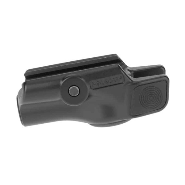 The LE111-R is a Class IIIA pistol-mounted red visible laser aiming device. Features include a Titanium housing, ambidextrous controls, and IPX8 certified water resistance