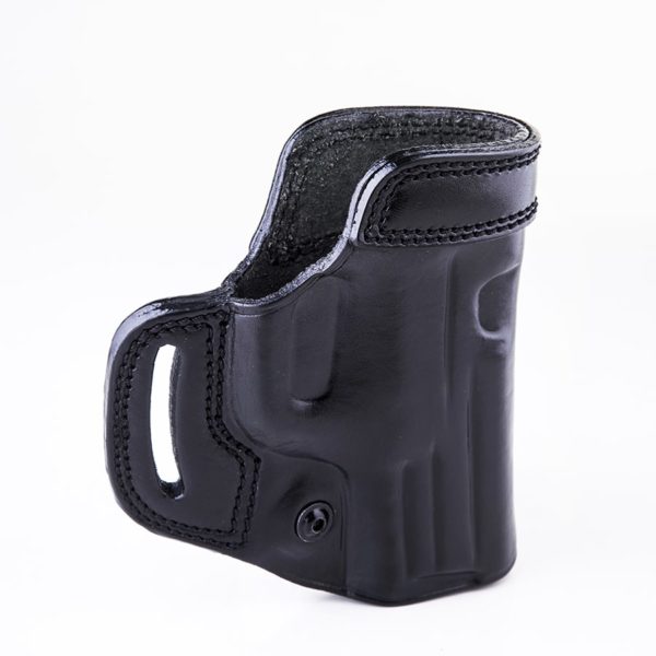 The “Re-holster” is constructed of premium saddle leather and features a reinforced holster opening for ease of re-holstering. A neutral cant carrying allows users a combat positive grip. The “Tunnel Loop” directs the pistol easily and comfortably in and out the holster assuring a quick draw and an easy re-holdtering of the pistol.