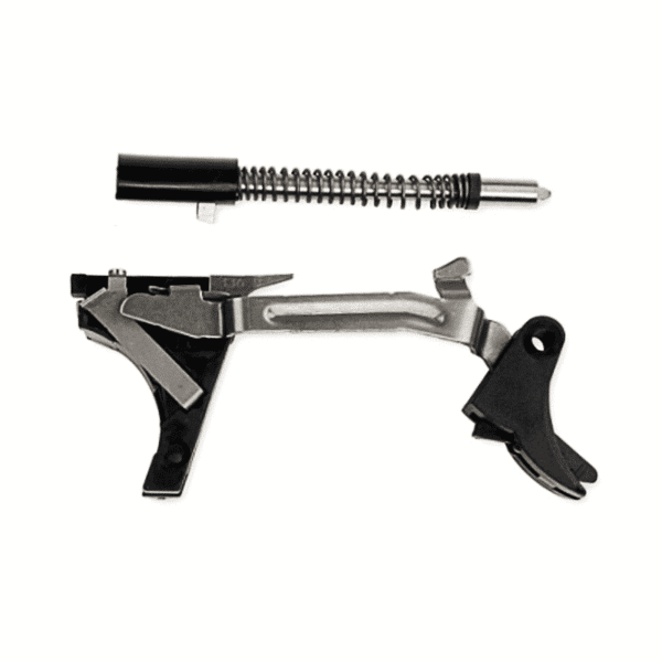 The kit includes a specially designed striker with a modified trigger bar and trigger housing. This gives you an automatically resetting realistic trigger pull allowing for rapid shot after shot practice. When used in conjunction with a SureStrike laser cartridge, the system will project a laser dot to your target with each and every shot, no matter how fast you pull the trigger. The Glock Reset Trigger is a drop in system that can be installed into your existing gun in just a few minutes with no special fitting required.