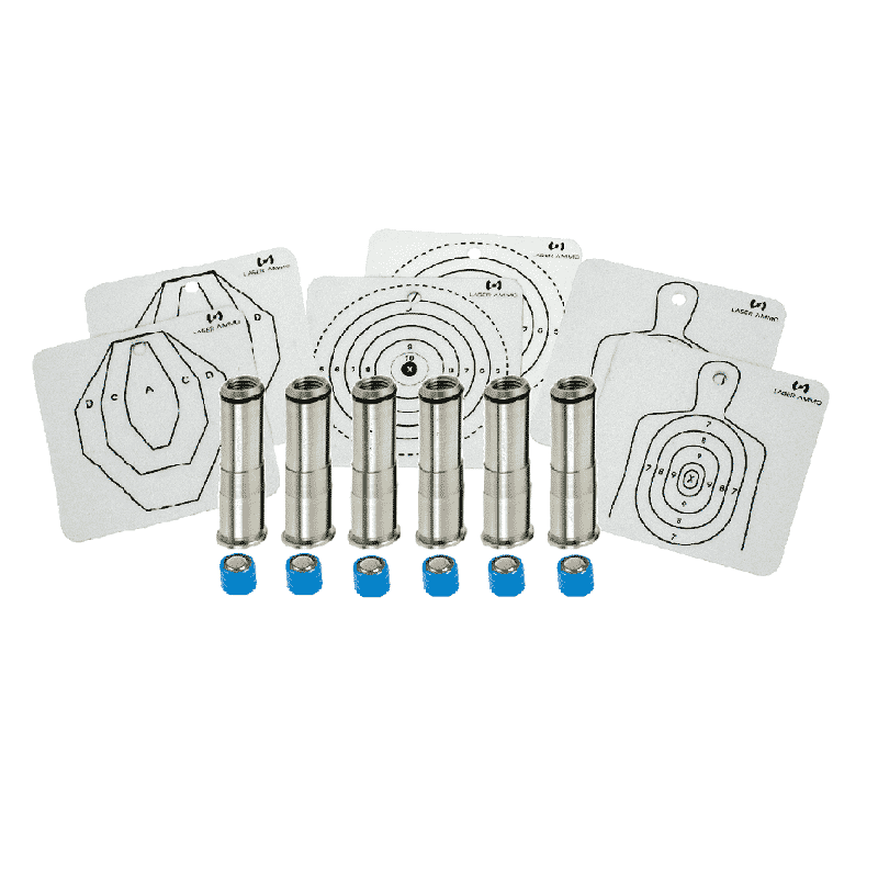 Why wait for your revolvers cylinder to fully rotate back to your loaded SureStrikeTM chamber. With our SureStrikeTM 38/357 Pro Six Pack you can now fully load your revolver and train with laser dry fire with every pull of the trigger. Load the 38 Special / 357 cartridge into each of the cylinders and you are ready to shoot!