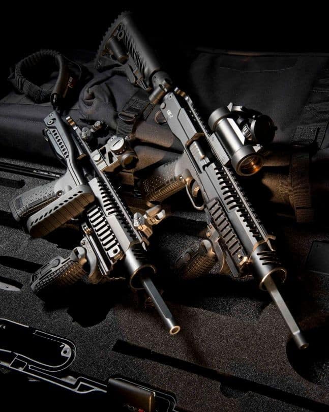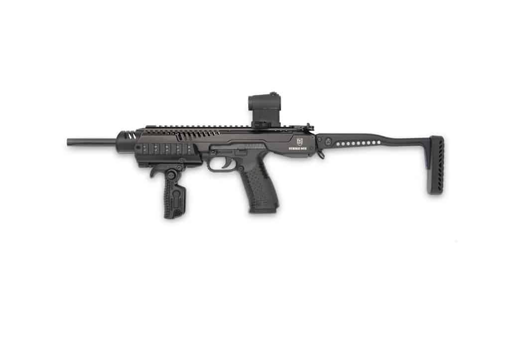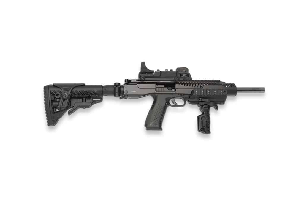 The new LRC-2 (long range conversion kit) available in 2015 as a fab defense extension and a 300 mm (12 inch) stainless steel barrel. Available in 9 luger only, this conversion kit allows fast and accurate long range accuracy shooting for the first time with an otherwise standard, semiautomatic polymer frame hammerless pistol. The LRC-2 allows the mount of long range optic sights, red dots, collimators, night visions, so to expand a semiautomatic pistol beyond the known borders, allowing 100% shot placement at 100 yards and over.