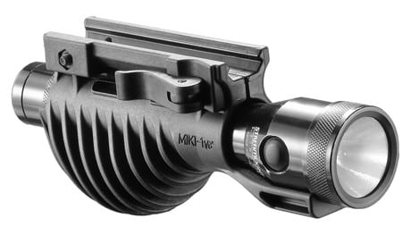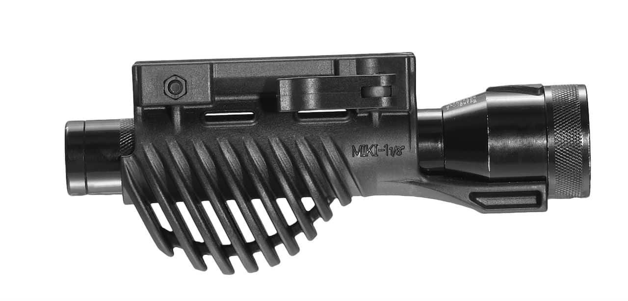 The MIKI Potato Shaped Foregrip incorporates a Two-in-One, special handgrip and a tactical flashlight mount.