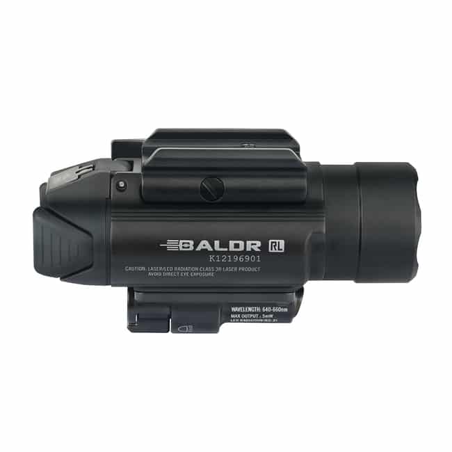 The BALDR RL is a professional lighting tool with red laser sight and white LED for installation on equipment with a Picatinny (MIL-STD-1913) or Glock rail. Powered by two CR123A batteries, the max output of the BALDR RL is 1,120 lumens. The neutral white LED and TIR lens makes for a robust searchlight. The center beam of the BALDR RL is intense and concentrated, also soft and wide when near the ground. The white LED can also be set to 300 lumens of constant lighting. The beam emitted by the red laser is clearly visible for accurate targeting. Equipped with adjustable screws, the light can withstand strong impacts and vibrations without loosening after calibration. It?s easy to install and detach the light by pressing or loosening the side swing arm. The main body of the product is made of aluminum alloy for extremely high strength and reliability. The BALDR RL is a high-quality budget choice for professional users with its excellent ease of use, high brightness, and extremely powerful performance.