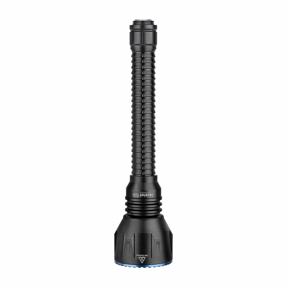 he Javelot Turbo is a dual-switch LED flashlight upgraded from Javelot Pro. Most of the great features of Javelot Pro are still there, including the throw, convenient side switch, integrated replaceable battery pack, power level indicator, and the 63mm bezel diameter.