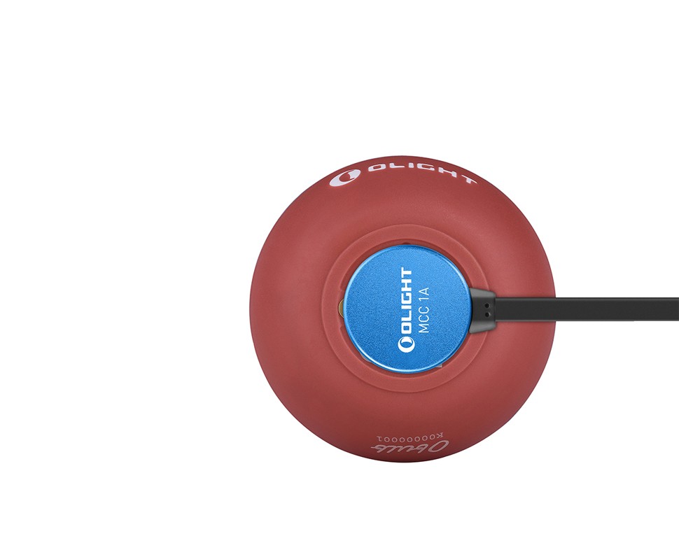 It is charged via Olight MCC 1A magnetic charging cable, the built-in rechargeable battery allows up to 56 hours of runtime.
