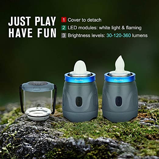 - 【Multi-Function】Featuring two interchangeable LED modules, the Olight hanging lantern allows you to switch between a standard white light or an ambient flickering flame for versatile illumination and fun,like camping,hiking,and parties.