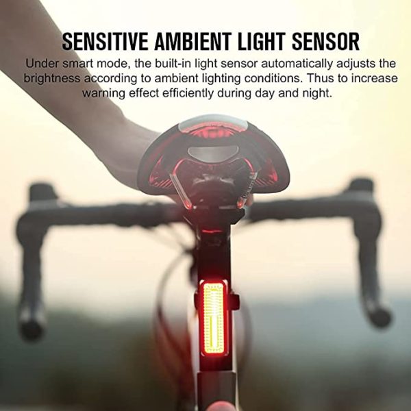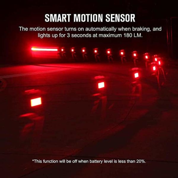 With the same sensors, the tail light enters into a sleep mode to save power after one minute of inactivity. Any movement will immediately re-activate the unit.