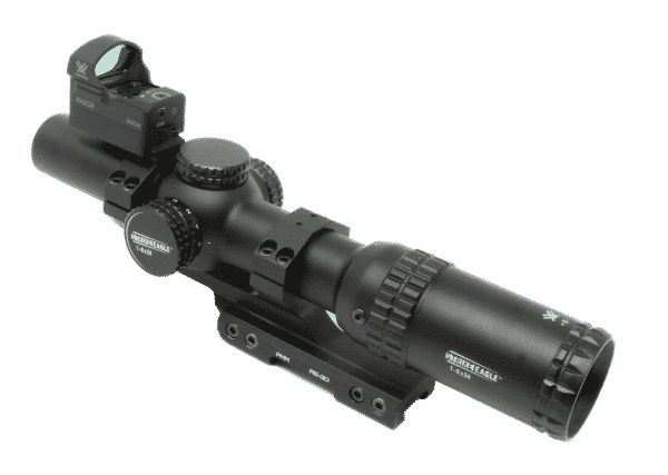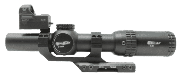 PMM RS-30 mounts on top of your Picatinny rail to supports 30 mm telescopic sights. On top of it, you can install the Picatinny mount which will allow you to attach a Red Dot on top of.