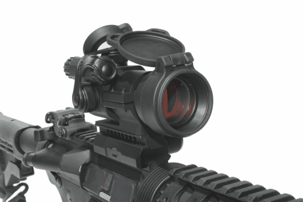The PRO sight contains a QRP2 mount and a standard AR15 spacer which can be removed. It is also equipped with flip covers, a black front flip cover and a transparent rear flip cover that allows the user to engage a target with both lens covers closed in an emergency situation.