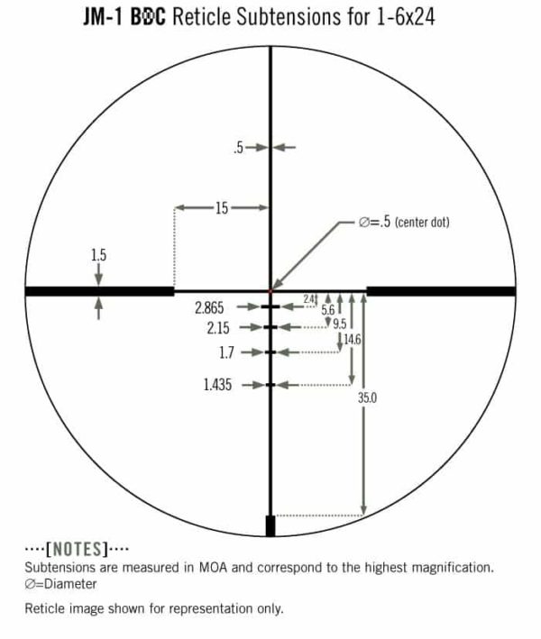 Scale of reticle maintains the same ideally-sized appearance. Listed reticle subtensions used for estimating range, holdover and wind drift correction are accurate at the highest magnification. |