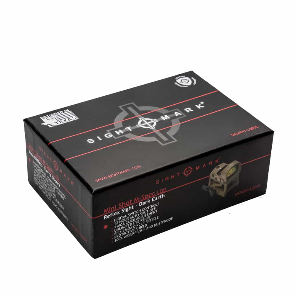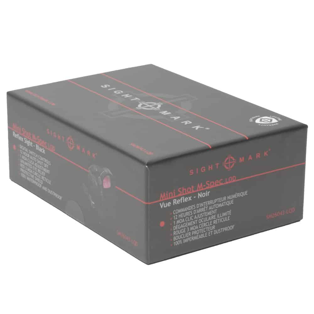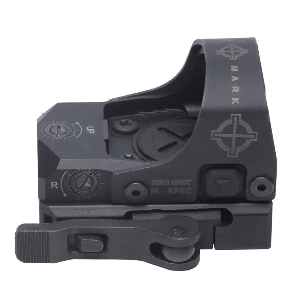 Designed to be used on shotguns, pistols and AR?s, the compact Mini Shot M-Spec LQD is a rugged reflex sight with a 3 MOA red dot reticle. The sight includes both a QD low profile mount and a QD riser mount.