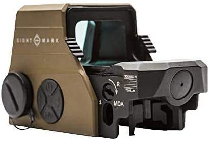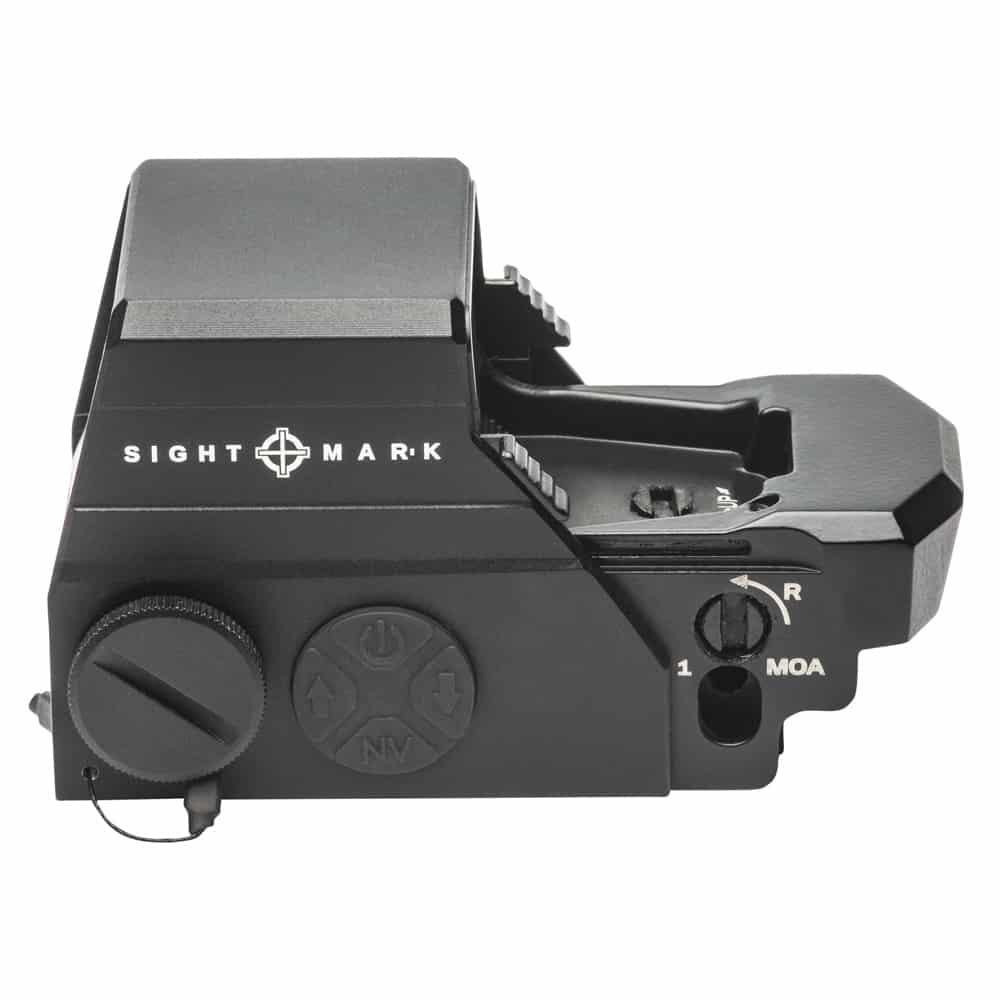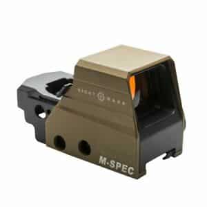Perfectly suited for fast, accurate action at the range, the Sightmark Ultra Shot M-Spec FMS Reflex Sight delivers a crisp field of view with an advanced, anti-reflective, scratch resistant lens system, red 65-MOA circle-dot reticle with 10 brightness settings, night vision brightness modes, parallax correction (beyond 10 yds.), 1 MOA click adjustments (120 MOA of travel), Interlock internal locking adjustment system and a long, reliable battery life, from 200 to 2,000 hours on a single CR123 battery.