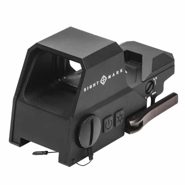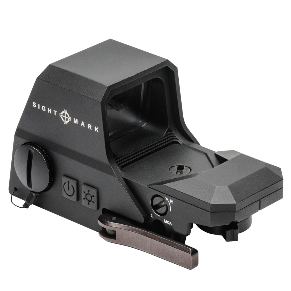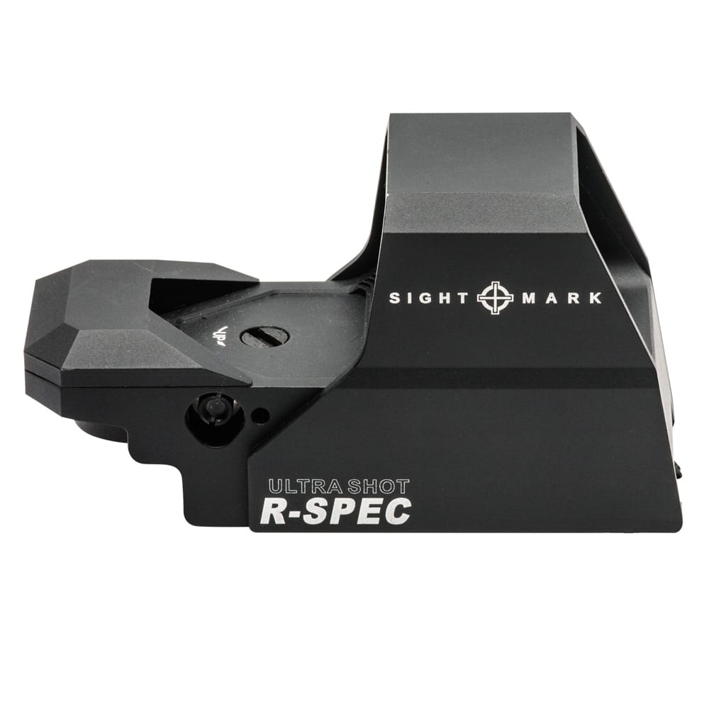Perfectly suited for fast, accurate action at the range, the Sightmark Ultra Shot R-Spec Reflex Sight delivers a crisp field of view with an advanced, anti-reflective, scratch resistant lens system, 4 red and green reticle options with 10 brightness settings, parallax correction (beyond 25 yds.), 1 MOA click adjustments (120 MOA of travel), Interlok internal locking adjustment system and a long, reliable battery life, from 200 to 2,000 hours on a single CR123 battery. Built tough, the IP55 weather-resistant, shockproof Ultra Shot R-Spec Reflex boasts a 6061-T6 aircraft-grade aluminum body and protective shield, recoil rating up to .50 BMG and a lifetime warranty. Includes a quick-detach picatinny mount, adjustment tools, CR123A battery, operation manual and neoprene cover. The Sightmark Ultra Shot R-Spec Reflex Sight turns up the heat on your range time with ultra-fast target acquisition and seriously long battery life, from 200 to 2,000 hours on a single CR123A battery. The Ultra Shot R-Spec?s premium wide-angle lens system with scratch resistant and anti-reflective silver coating, 4 illuminated red/green reticle options with 10 brightness settings, parallax correction (beyond 25 yards) and unlimited eye relief deliver a crisp, robust field of view and uncompromising reliability. Built tough, the Ultra Shot R-Spec Reflex Sight is shock proof, IP55 weather-resistant, recoil rated up to .50 BMG and constructed of a rugged, lightweight 6061-T6 aluminum body and protective shield. 1 MOA windage and elevation adjustments, up to 120 MOA of travel, get you on target quickly and keep you there with an Interlock internal locking adjustment system, for precise, repeatable shooting from any range your comfortable shooting at 1x magnification. The Ultra Shot R-Spec Reflex Sight also features a low battery indicator, digital switch controls, 1-hour auto shut-off, quick-detach picatinny mount and Sightmark?s lifetime warranty. ?Includes adjustment tools, CR123A battery, operation manual and neoprene cover.