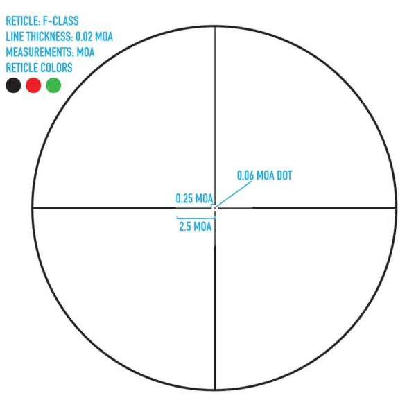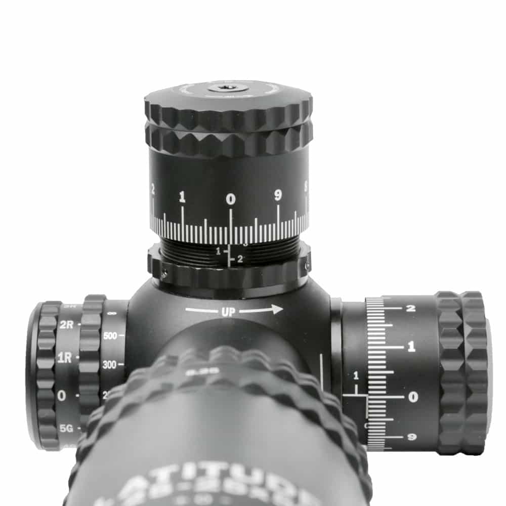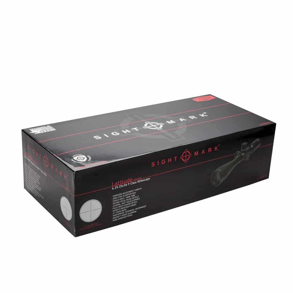 When looking for a dependable, five-star riflescope, look no further than the Latitude 6.25-25x56. Designed in Texas for F-Class competitions, this second focal plane scope features oversized adjustment turrets, making it extremely easy to grab and adjust. A zero stop elevation dial ensures adjustments can?t go below the original zero when quickly changing the dial. Built with long-range shooters in mind, the Latitude 6.25-25x56 has a 34mm single piece tube with a useful 110MOA adjustment range. The Latitude?s locking, fast focus eyepiece keeps the eyepiece focus set so you can focus all of your attention on hitting the target. Less than half the price of some competitors, the Latitude?s etched F-class reticle can be illuminated red or green for low-light shooting. The answer to the long-range but affordable optic question, Latitude 6.25-25x56 scopes include sunshade, CR2032 battery and instruction manual.