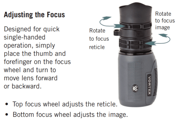 | Reticle Focus | Ensures a sharp reticle image at all distances. |