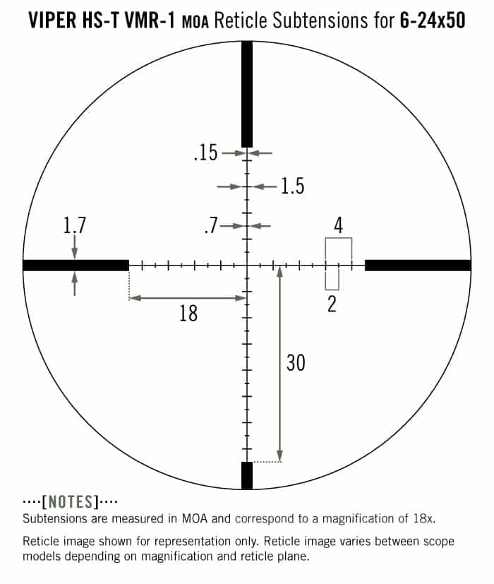 Read the Viper HST 6-24x50 with VMR-1 MOA Reticle manual for details on how to effectively determine range, holdover, windage and moving lead corrections.