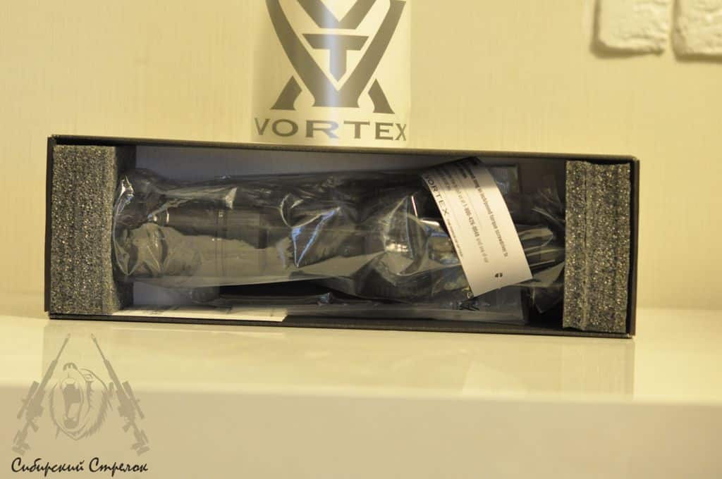 The scope comes in a box with a brand design from Vortex, made in strict black and white colors. The quality of packaging, perfect as always.