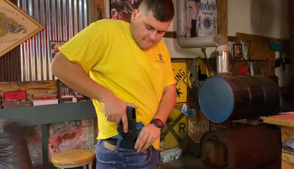 Something I thought was very interesting about this holster is that the belt clip allows you to still tuck in your shirt for a complete level of concealment and being able to blend in with society without showing signs of carrying.